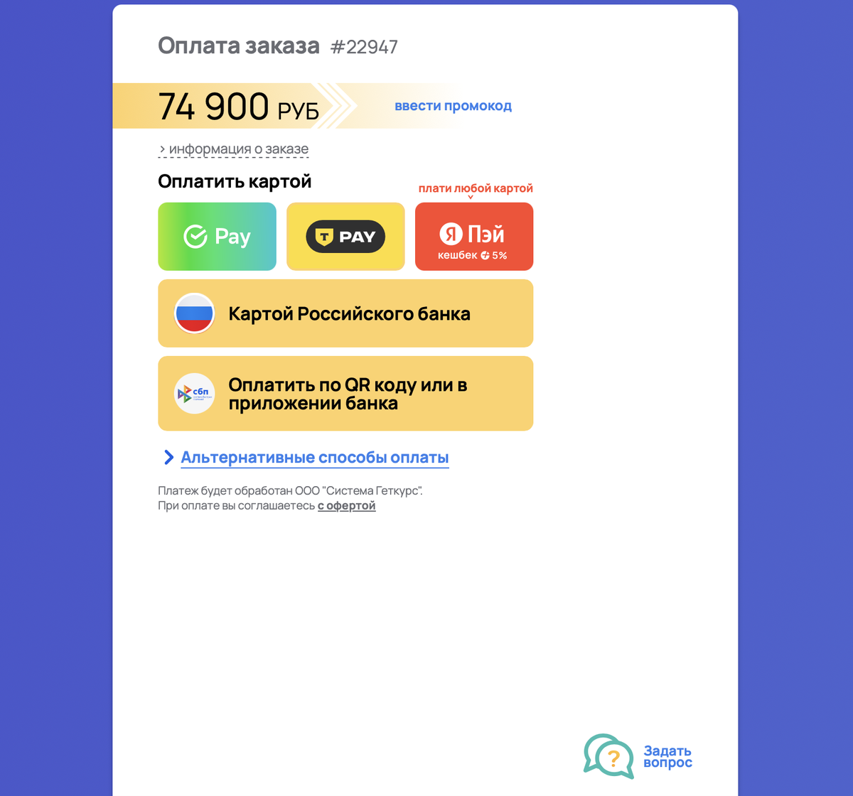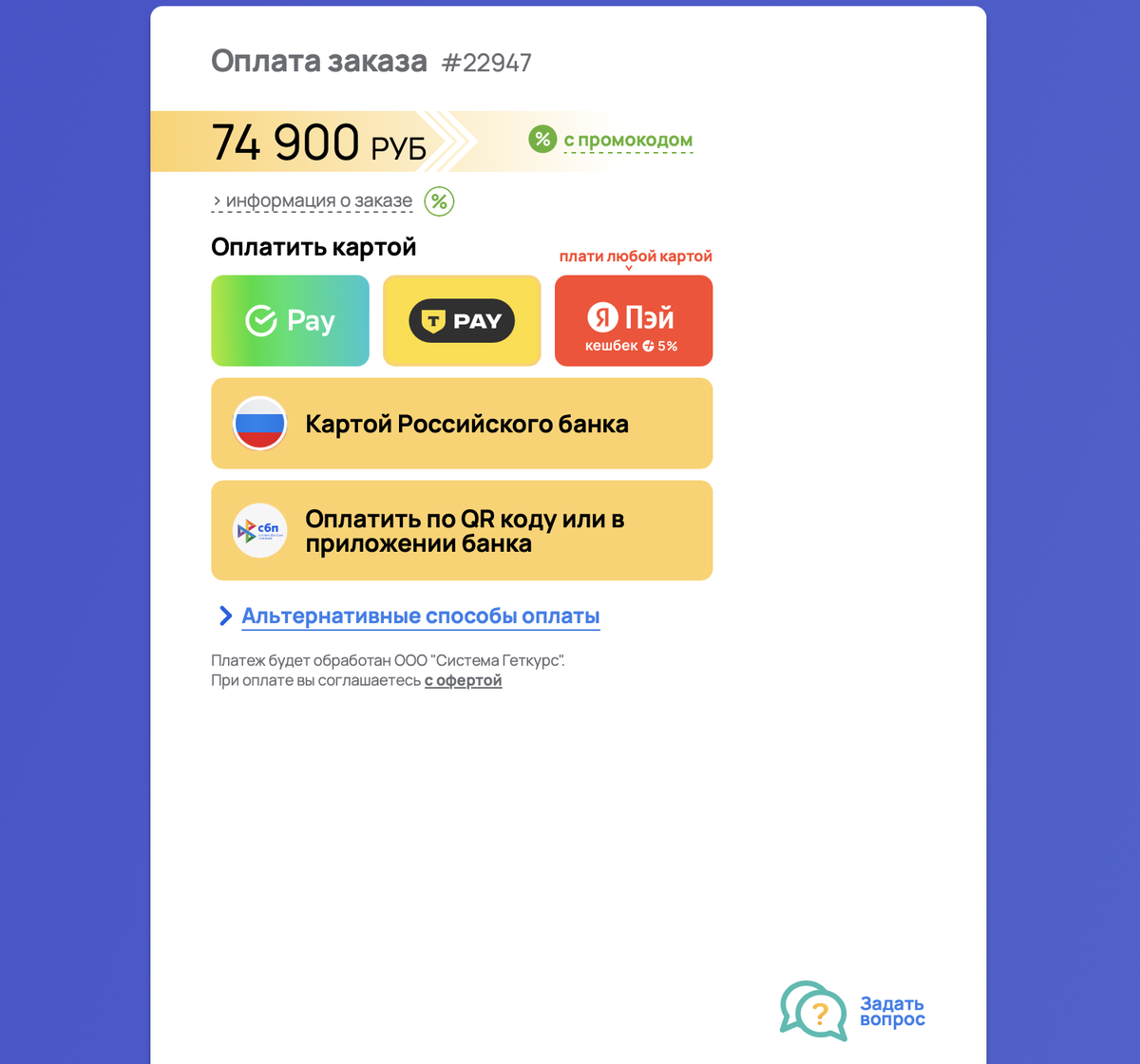 - Друг выбирает один из способов оплаты и оплачивает заказ