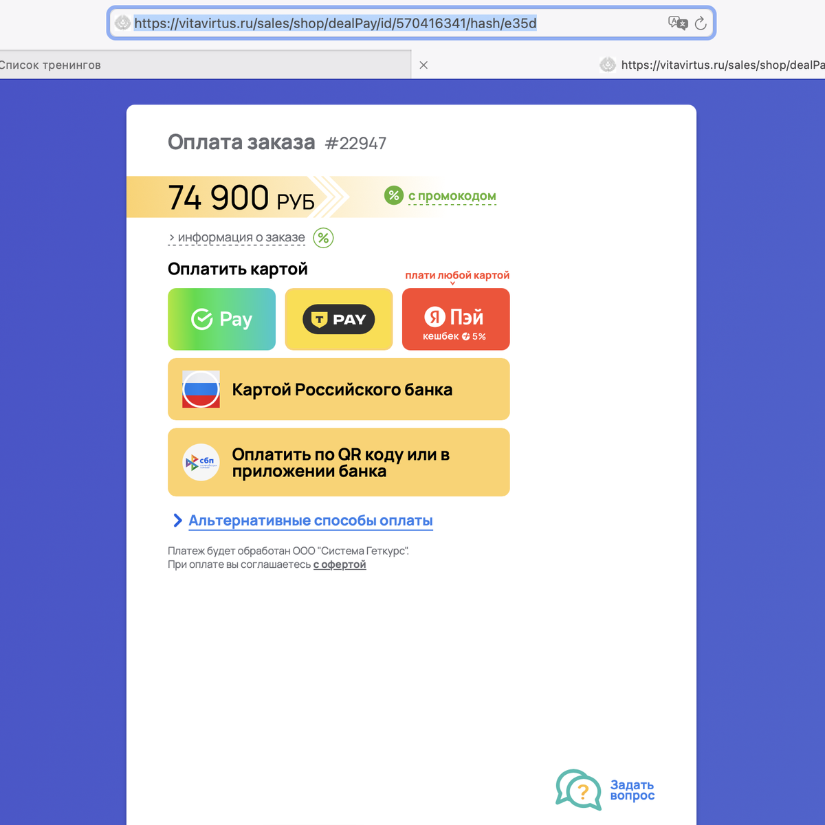 - Теперь, когда промокод применен, копируем из адресной строки браузера ссылку на оплату заказа и отдаем ее другу, если вы сами оформляли заказ с данными друга